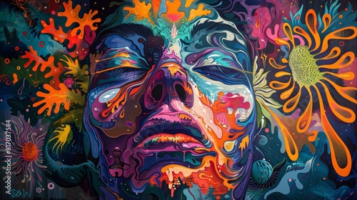 anti, drug, day, portrait, surreal, man, face, melting, vibrant, organic, floral, cosmic, art, artwork, illustration, painting, colourful, abstract, fantasy, creative, design, nature, modern, flower, expression, surrealism, dreamlike, texture, pattern, hallucinogen, dynamic, bold, imaginative, contemporary, graphic, artistic, visual, emotional, style, unique, culture