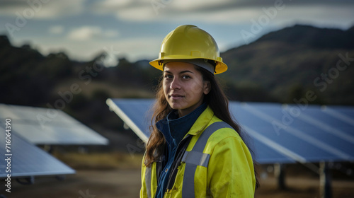 Sustainable Brilliance: Female Engineer with Solar Panels, Generative AI