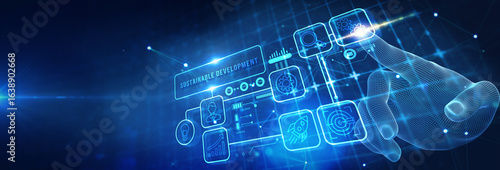 SUSTAINABLE DEVELOPMENT inscription, cloud technology concept. Business, Technology, Internet and network concept. 3d illustration