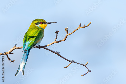 Swallow-tailed bee-eater (Merops hirundineus) perched on acacia tree, Okavango delta, Botswana