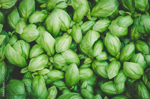 Sweet Basil leaves background texture
