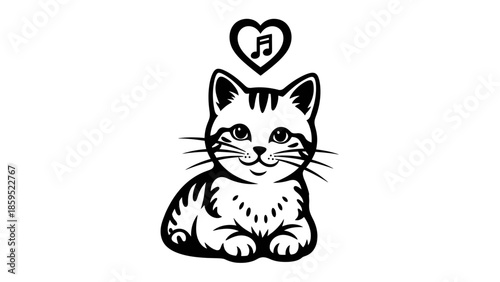 sweet, cartoon, kitten, sitting, nubes, cat, love, musical, pet, felino, cute, adorable, illustration, vector, black-and-white, drawing, doodle, graphic, design, character, happy, emotion, melody, song, harmony, feeling, isolated, studio, art, minimalist, playful, charming, childlike, innocent, lovely, friendship, kindness, music lover, animal, symbol, creative, joy, expressive, romantic