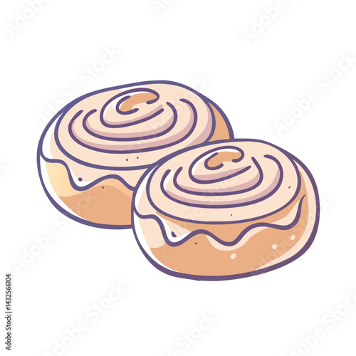 Sweet Cinnamon Rolls Dessert Cartoon Style Illustration