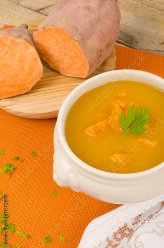 soup, yam, sweet potato, pumpkin, homemade, ready to eat, bowl, starter, hot, traditional, ingredient, vegetable, vegetarian, sweet, fresh, portion, serving, 1, seasonal, autumn, fall, carrot, vertical