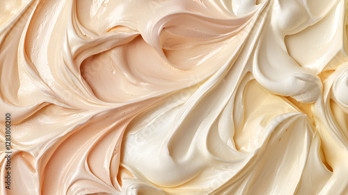 Swirls of creamy, light-colored frosting create a smooth and visually appealing textured background.