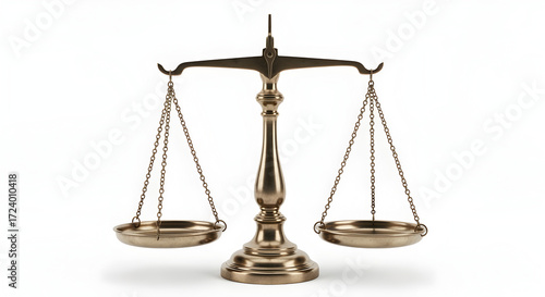 Symbol of justice and balance with antique brass scales on a white background