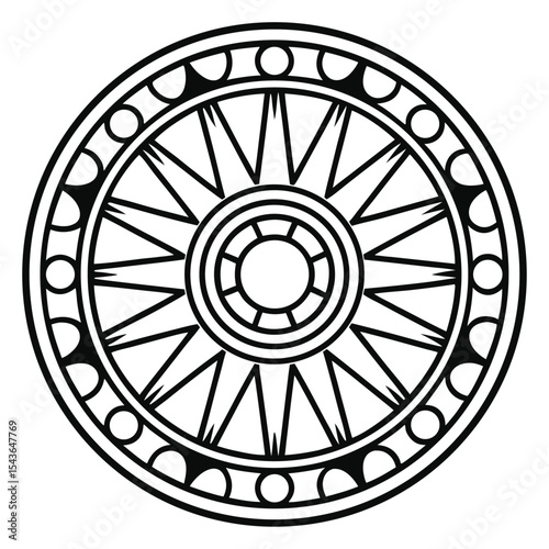 sun, wheel, design, radial, geometric, circle, abstract, illustration, pattern, decorative, motif, ornament, element, symmetric, mandala, round, shape, art, vector, graphic, drawing, image, texture, symbol, vintage, retro, style, background, template, decoration, artwork, ornamental, ethnic, cultural, simple, line, outline, icon, signs, heraldic, tattoo, print, textile, badge, crest, ancient, classic, frame