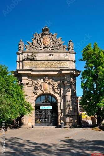 europa, poland, polish, szczecin, gate, architecture, arch, historical building, building, landmark, tour tourism, sky, travel, ancient, vientiane, old, city, history, park, arc, historic, fountain