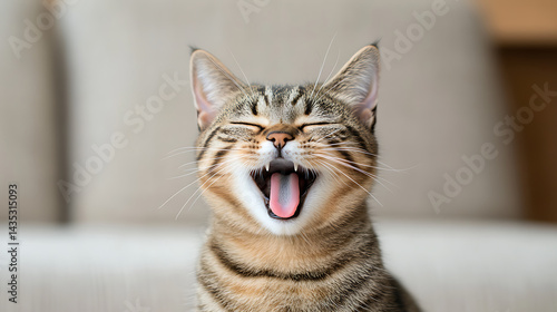 tabby, cat, look, closeup, face, happy, pet, relaxing, home, animal, domestic, felino, mammal, kitten, cat, paw, whisker, eye, ear, nose, mouth, fur, coat, stripes, pattern, texture, expression, emotion, joy, contentment, peace, calm, serenity, comfort, rest, sleep, nap, sunbeam, window, couch, sofa, carpet, floor, house, indoor, room, light, shadow, photo
