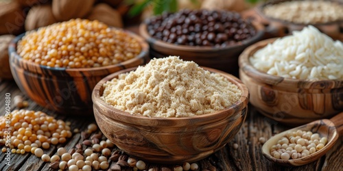 Table With Wooden Bowls Filled With Food