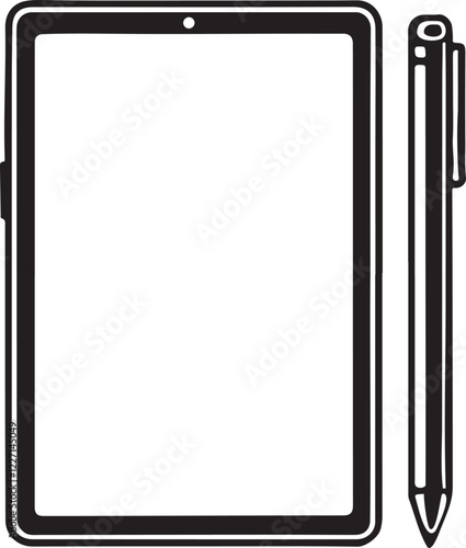 Tablet with stylus silhouette icon, perfect for digital drawing, graphic design, and creative apps. Clean vector EPS for tech, art, and productivity designs.