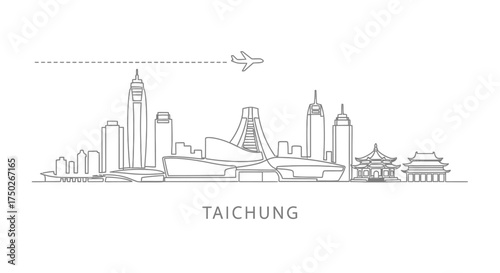 Taichung Skyline Line Art with Airplane
