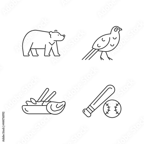 Taiwan national endemic linear icons set. Traditional cuisine. Customizable thin line contour symbols. Isolated vector outline illustrations. Editable stroke