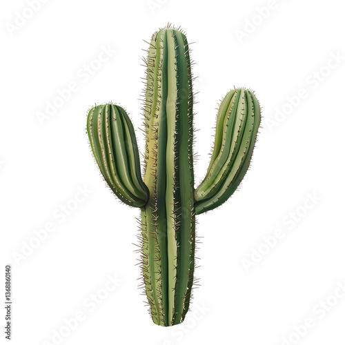Tall cactus with three branches on white background