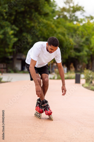 active, activity, adult, athlete, hobby, lifestyle, male, man, outdoors, sport, sportsman, activewear, strength, summer, tall, wellness, physical exercise, young, roller, wheel, enjoyment, amusement, riding, determined, professional, long-legged