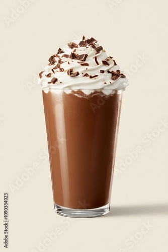Tall Glass of Decadent Chocolate Milkshake with Whipped Cream and Chocolate Shavings