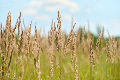 grass, summer, field, nature, landscape, sunlight, blue skies, outdoors, plant, rural, gold, windy, green, environment, calmness, agriculture, growth, flora, warm, season, brightness, serenity, natural, beauty, wild, countryside, sunny, peaceful, scenic, meadow, botanical, harmony, summer day, freshness, greenery, wildlife, swaying, texture, open space, simplicity, essential