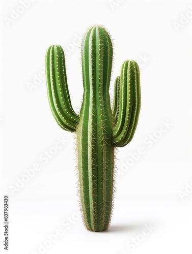 Tall Green Cactus with Multiple Arms Isolated on White Background