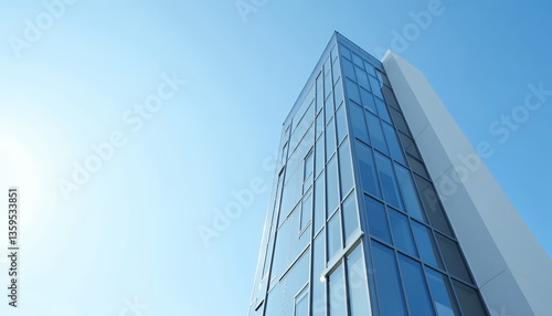 building, skyscraper, glasses, tall, modern, blue, sky, clear, high, structure, office, architecture, window, vertical, sleek, design, city, urban, tower, reflective, steel, frame, facades, clean, line, sharp, angle, contemporary, commercial, exterior, light, bright, new, impressive