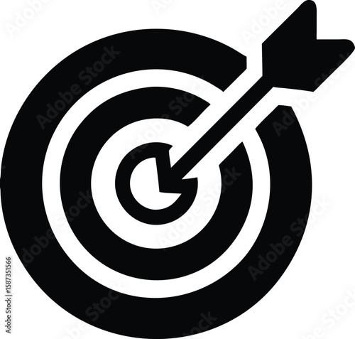 target, bullseye, arrow, hit, success, achievement, goal, sharpened, aim, precision, accuracy, vector, illustration, icon, symbol, black-and-white, isolated, graphic, design, business, strategy, concept, competition, result, dartboard, archery, sport, winner, challenge, honed, minimalist, flat, modern, simple, bold, shape, round