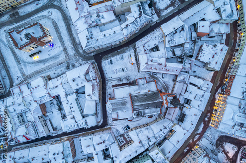 poland, city landscape, winter, from above, street, town square, city, panorama, town, dusk, drone, travel, city landscape, architecture, twilight, skyline, downtown
