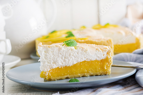 Tart with lemon curd and meringue. Lemon pie. American cuisine. Dessert.