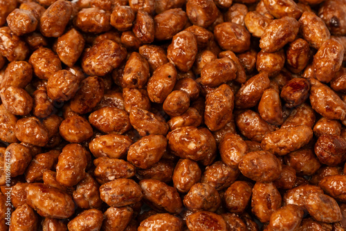 Tasty sweet roasted peanuts as a background.