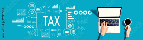 Tax theme with person using a laptop computer