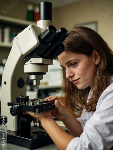 microscope, woman, doctor, laboratory, scientist, science, research, laboratory, student, medicine, eye, test, people, equipment, person, biology, technology, children, optical store, chemistry, eye doctor, experiment, scientific, looking, work