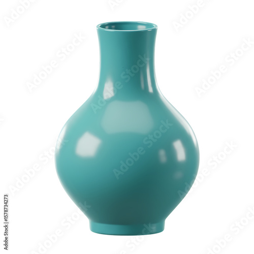 Teal Ceramic Vase isolated on transparent baackground