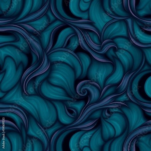 abstract, pattern, teal, swirl, blue, green, dark, black, texture, background, design, art, illustration, graphic, seamless, wallpaper, fabric, textile, print, digital, modern, contemporary, style, elegant, sophisticated, luxurious, calming, peaceful, serene, flowing, wavy, curve, line, shape, decorative, ornate, artistic, creative, vibrant, colours, shades, hue, surface