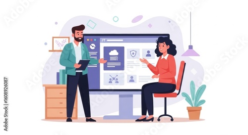 Team collaboration on it project: man and woman discussing in modern office setting