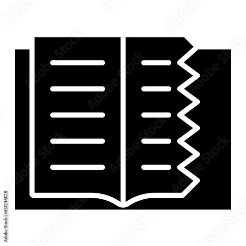 teared, book, tear, torn, page, education, study, subject, glyphs, icon, vector, illustration