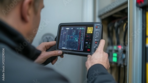 technology, technician, electricity, inspection, digital, device, panel, electrical, equipment, maintenance, energy, power, system, control, screen, wire, cable, industrial, engineering, automation, grid, electronic, datum, information, monitoring, diagnostic, analysis, measurement, testing, safety, work, job, man, hand, view, closeup, detail, professional, expertise, skilled, men at work, operator, service, repair, solution, industry