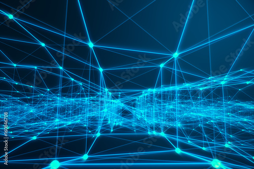 Technological connection futuristic shape, blue dot network, abstract background, blue background, Concept of Network, internet communication 3D rendering