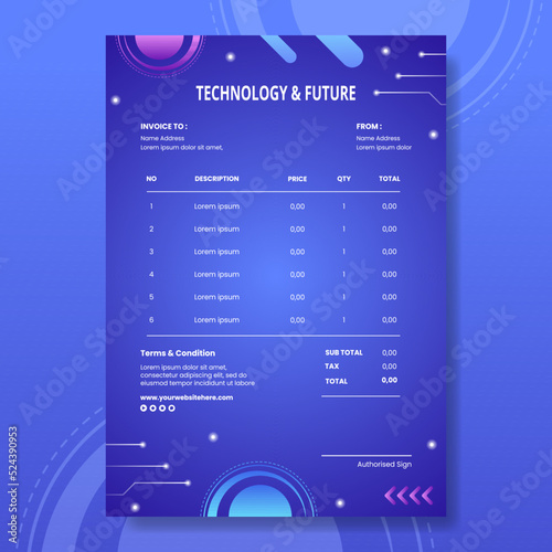 Technology Invoice Template Hand Drawn Cartoon Flat Illustration