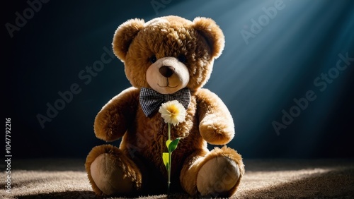 Teddy bear with a flower, a soft and cuddly gift that combines charm and sweetness for any occasion, perfect for gifting or decor.