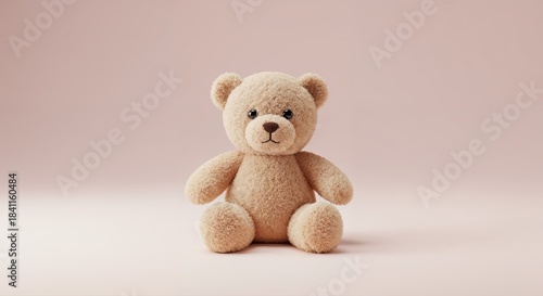 Teddy Bear's Delight: An endearing teddy bear sits gracefully, radiating comfort, serenity, and gentle joy against a pastel backdrop.