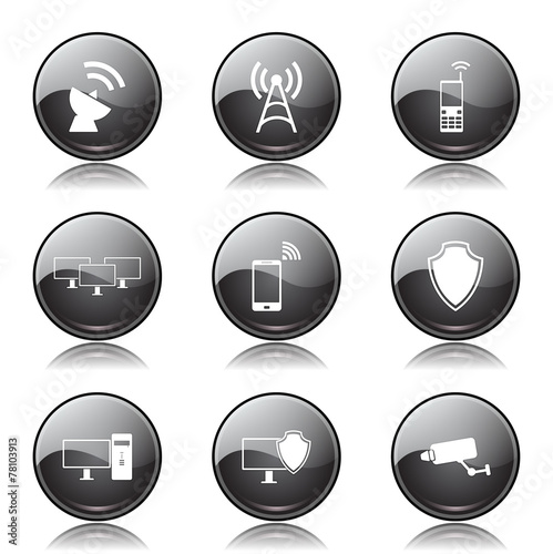 web button, black, icon, set, collection, cyberspace, web, web icon, symbol, shape, graphic, signs, vector, design, digital, isolated, illustration, telecom, telecom, communication, satellite, satellite dish, radio tower, computer, protected, shield, mobile phone, cctv, network