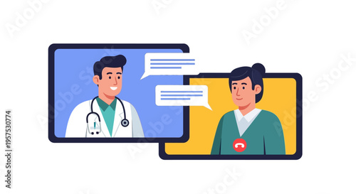 doctor, patient, health care, medicals, physician, consultation, communication, support, service, connection, convenience, accessibility, technology, cyberspace, chat, message, screen, computer, professional, stethoscope, labcoat, user, interface, innovation, future, wellness, prevention, assistance, treatment, diagnosis, illustration