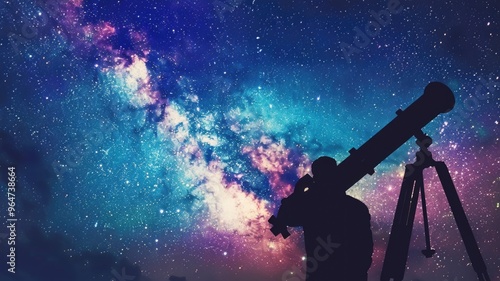 telescope, silhouette, star, galaxy, night sky, astronomy, space, astrophotography, cosmos, universe, celestial, observation, exploration, science, technology, astrophysics, night, dark, outer space, milky way, nebula, research, cosmic, discovery, equipment, starry, tripod, nightscape, observatory, infinite, background, colourful, mysterious, nature, sky, adventure, curiosity