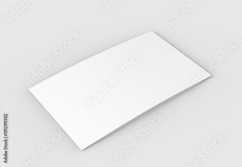 Template of blank three fold horizontal - landscape brochure mock up isolated on soft gray background. 3D illustrating.. 3D illustrating.