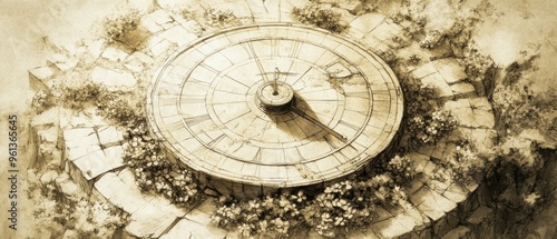 sundial, flower, blooming, shadow, growth, decay, time, nature, flower petals, movement, footed, cycle, life, organic, harmony, spontaneous, unfinished, evocative, vignetting, art, panorama, wide, banner, title, landscape, horizontal, hero, background, desktop, wallpaper