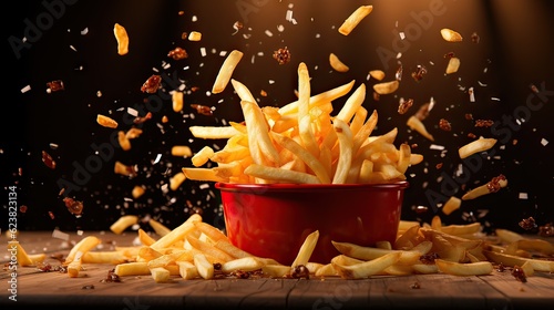 Tempting Golden French Fries Served in a Striking Red Bowl, Irresistible Snack Delight.