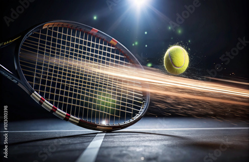 tennis racket and ball on court