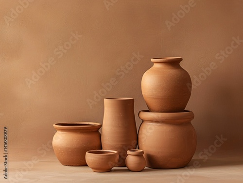 terracotta, pot, pottery, clay, earthenware, vase, still life, brown, beige, background, texture, rustic, minimalist, simple, decor, home decor, interior design, arrangement, collection, object, shape, form, earth-tone, natural, hand-made, craft, artisan, earthen, ceramic, container, bowl, design, art, aesthetic, neutral, calm, serenity, earthy, autumn, warm tones