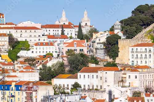 lisboa, lisboa, portugal, europa, european, travel, exterior, outside, outdoors, nobody, no one, no people, blue skies, clear sky, sunny, urban, city, neighbourhood, tile roof, tile, roof, architecture