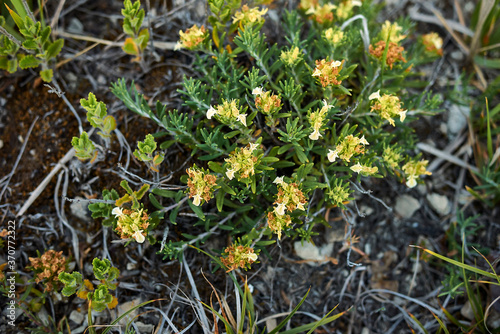 plant, white, yellow, flower, inflorescence, in bloom, closeup, medicinal herbs, herb, green, leaf, leaf, creeping, evergreen, perennial, blooming, toxic, blossom, stem, uncultivated, background, natural, season, countryside, spring, springtime, flora, environment, nature, botany, botanical
