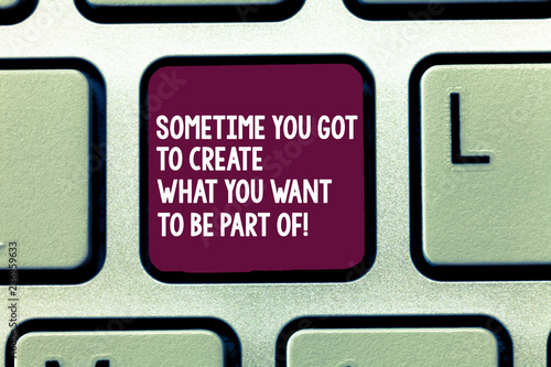 Text sign showing Sometime You Got To Create What You Want To Be Part Of. Conceptual photo Be an entrepreneur Keyboard key Intention to create computer message, pressing keypad idea