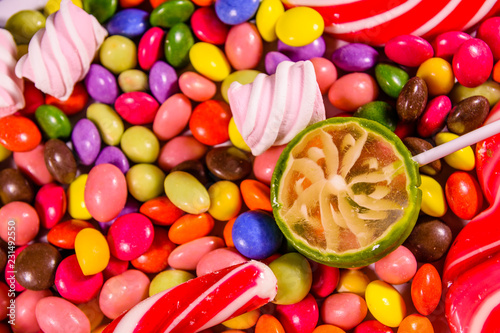 assorted, background, birthday, blue, bonbon, bright, candy, cane, celebration, childhood, chocolate, closeup, colourful, confectionery, decoration, design, dessert, festive, food, fruit, green, group, gummy, heap, holiday, jelly, lollipop, many, marshmallow, mix, orange, party, pattern, pile, red, snack, stick, striped, sugar, sweet, sweetmeat, texture, top, treat, view, wallpaper, white, yellow